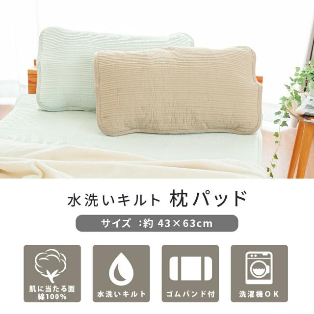 [keyword|枕パッド 綿100% オールシーズン 43×63cm レギュラー 水洗いキルト 吸水 速乾 洗える 春夏用 イブル ヌビ まくらパッド 四隅ゴム 無地 ピンク グリーン ベージュ グレー コットン まくらカバー 枕カバー 汗取り]