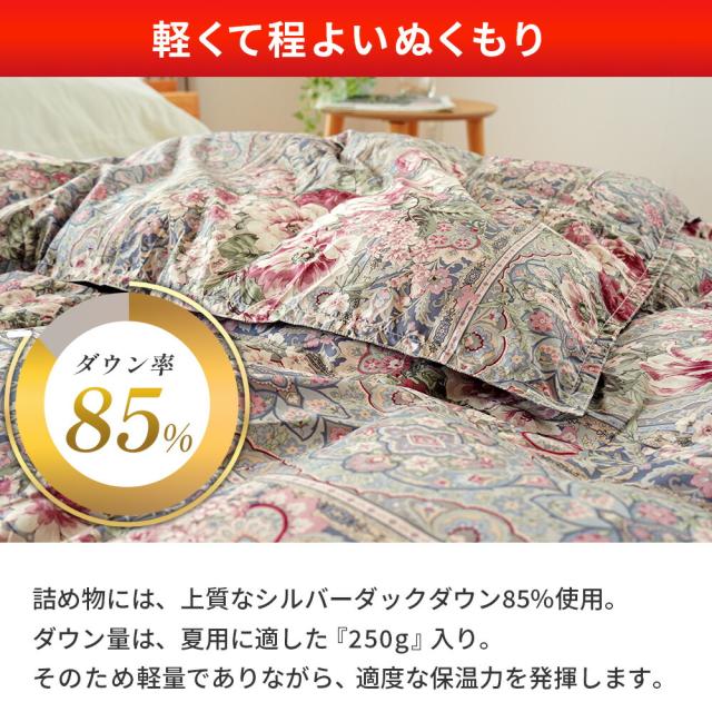 [keyword|ロマンス ダウンケット シングルロング 150×210cm 洗える ウォッシャブル ダックダウン85% 250g 丸洗い 日本製 羽毛 肌掛け 夏の掛け布団 春 夏用 羽毛布団 オールシーズン 総柄 冷房対策 羽毛肌掛け布団 ロマンス小杉 日本製]