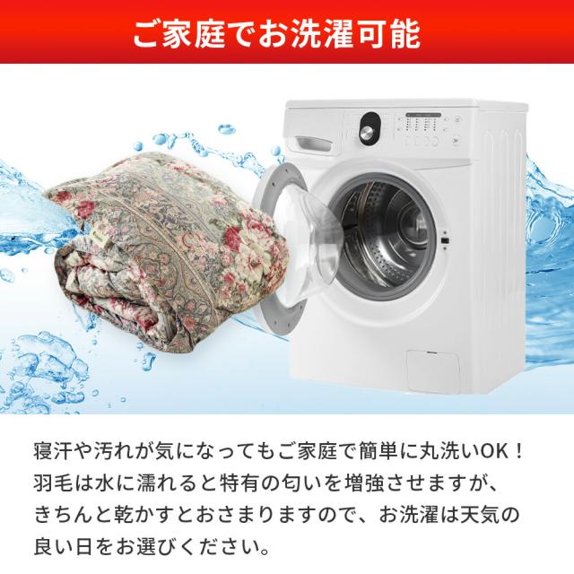 | ・軽くて程よいぬくもり 詰め物には、上質なシルバーダックダウン85%使用。ダウン量は、夏用に適した『250g』入り。そのため軽量でありながら、適度な保温力を発揮します。 ・国内でふっくらパワーアップ加工羽毛は小さな袋に大量に圧縮されて輸入されます。 その圧縮された羽毛を、本来の品質に復元させるのが このパワーアップ加工です。 復元だけでなく、混入したファイバーや ゴミを除去し、高熱と高圧でダニや 細菌も消滅させてくれるのです。 ・夏に1枚でちょうどいい、寝冷え防止にも薄手の仕上がりに加えて適度な保温力で、冷房からの冷え対策や、春・秋の肌寒い季節での使用に最適です。 特にちょっとした寒さを感じやすい寒がりさんにはぜひ試していただきたい、おすすめの一枚です。 ・ご家庭でお洗濯可能寝汗や汚れが気になってもご家庭で簡単に丸洗いOK! 羽毛は水に濡れると特有の匂いを増強させますが、きちんと乾かすとおさまりますので、お洗濯は天気の良い日をお選びください。 ・京都発の老舗メーカー「ロマンス小杉」製品創業70年を超える老舗寝具メーカーロマンス小杉は、お使いくださるお客様の寝心地、使い心地を追及する「ものづくり」にチャレンジしています。 | |