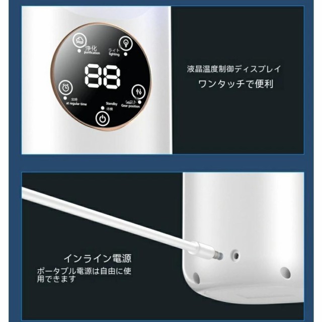 【3-in-1 のポータブル設計】:冷暖房、加湿、空気清浄機能を備えたこのタワーファンは、どの部屋にも簡単に移動できます。快適さと健康のために涼しい空気を提供します。