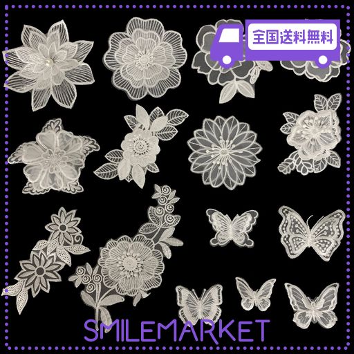【CRSHIP】 アイロン ワッペン アップリケ モチーフ レース生地 刺繍花 服 パッチ DIY 手芸 裁縫 縫い付け 男の子 女の子 保育園 幼稚園 手袋 手帳 飾り 補修 (ホワイト花+胡蝶 15枚)