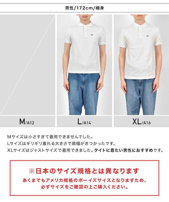 Details 【BOYSポロシャツ】 あらゆるポロシャツの原点となったラコステのクラシックな形のポロシャツが入荷。海外の学生サイズですが、子供はもちろん、日本の成人女性や男性(小柄から普通体型の方)にジャストサイズで着ていただけます。着心地のいいピケ(鹿の子)素材。肌触りと通気性の良さで世界中で愛され続けるデザインです。 ブランド名 LACOSTE / ラコステ 品番 PJ2909 サイズ M:肩幅36/袖丈18/身幅42/着丈55-58cm L:肩幅38/袖丈19/身幅45/着丈58-60cm XL:肩幅41/袖丈19/身幅47/着丈63-64cm 重量 M:約170g L:約200g XL:約210g 素材 綿100% 生産国 ペルー ご注意 ※表記サイズより、多少の誤差があることがございます。 ※商品の画像はできる限り実物に近づけるよう配慮しておりますが、お使いのモニターやご覧になる環境によりましてはカラーの見え方に差が出る場合がございます。ご了承くださいませ。 ※メール便発送の場合タグを切ってパッケージから出して発送する場合があります。ご了承くださいませ。 関連キーワード ポロシャツ LACOSTE ラコステ 半袖 レディース ブランド 大人 ジュニア ボーイズ メンズ 鹿の子 スポーツ 綿100% コットン 白 女性 男性 小学生 中学生 高校生 夏服 定番 カジュアル スポーティ ユニセックス ホワイト ブラック ネイビー 黒 襟付き シャツ 子供 ロゴ PJ2909 プレゼント 男女兼用 ワンポイント 涼しい かわいい ボーイッシュ ピケ タイトめメンズ 無地 男の子 女の子 フランス ワニ 10代 20代 30代 40代 50代 60代 70代 80代 5年 6年 五年 六年 生 小学校 中学校 高校 大学 大学生 通学 通勤 子ども こども キッズ 女子 ガールズ girl 男子 boy バースデー 誕生日 ギフト 母の日 父の日 おしゃれ お洒落 シンプル かっこいい M L XL 001 031 166 ゴルフ | |||||||||||||