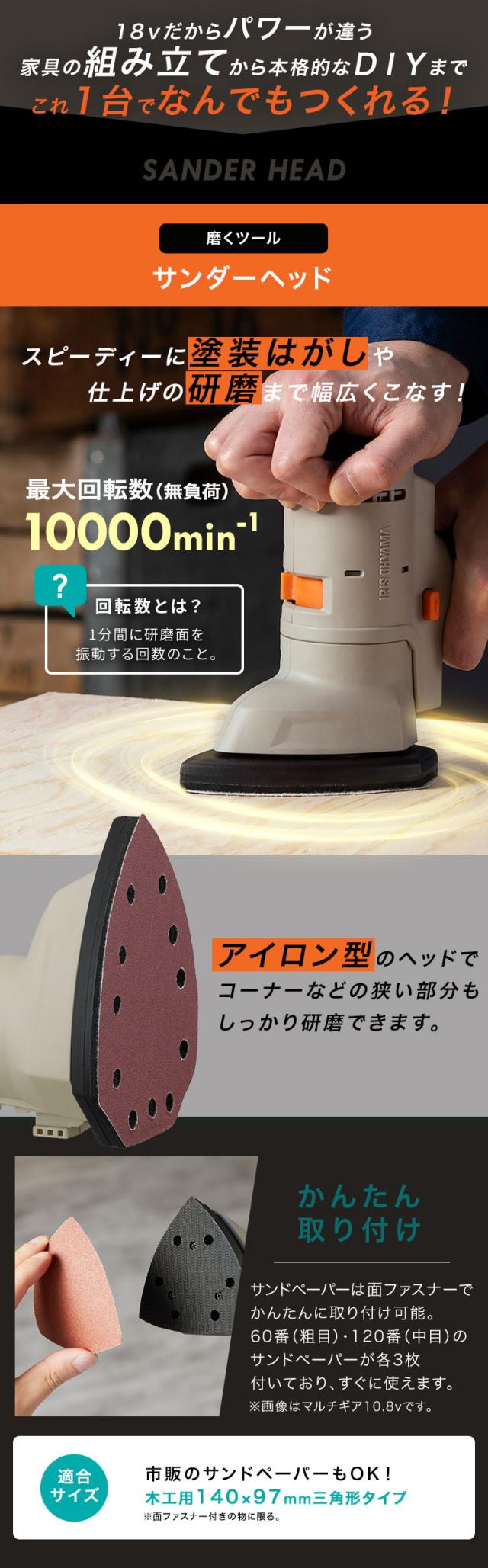 サンダー 電動工具 電動サンダー 18V マルチギア専用 ヘッドパーツ 充電式 マルチツール コードレス 研磨 粗削り ヤスリ掛け サンドペーパー付 取り付け簡単 工具 DIY 中級者 上級者 追加 オプション 別売 単品 JM18SN アイリスオーヤマ * 送料無料