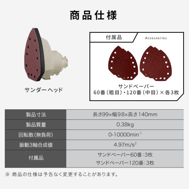 セット内容:サンダーヘッド+サンドペーパー(60番・120番×各3枚)