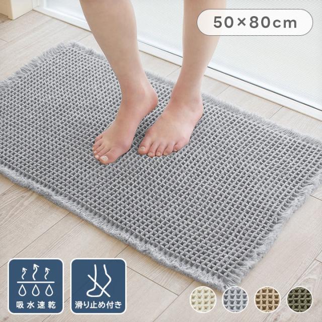 バスマット ワッフル 吸水速乾 50×80cm 速乾 お風呂マット 浴室マット 足拭きマット マット 吸水 バスグッズ ワッフル地 ワッフル織 洗える 丸洗い お風呂 厚手 25S028