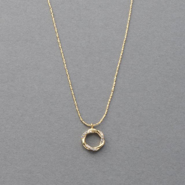 プレーンメタルとビジューラインをツイストさせたようなデザインのネックレス。華奢なチェーンと煌めくビジューが大人っぽく上品な印象◎デコルテを美しく引き立たせてくれるデザインで、流行に左右されず長くご愛用いただけます