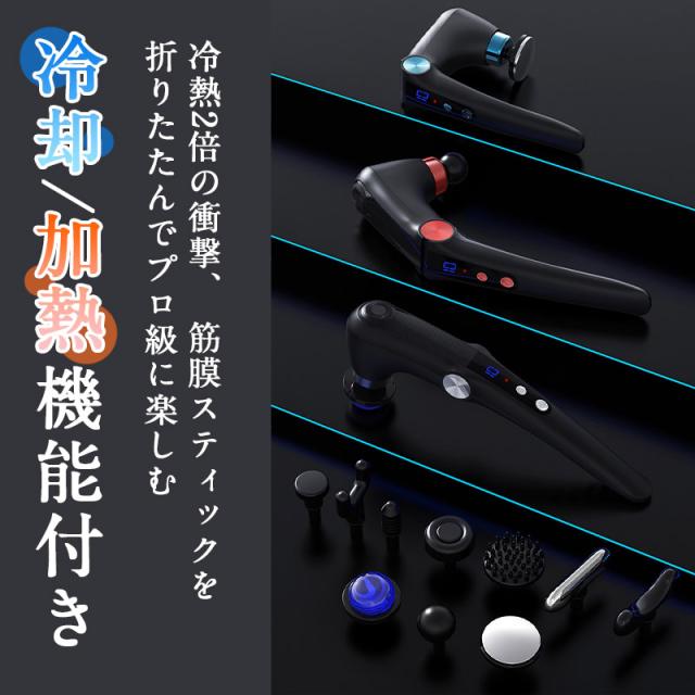 マッサージガン 軽量 筋膜リリースガン 背中 折り畳み 冷却 加熱機能付き マッサージ機 全身 小型 10種類ヘッド 9段階強度 腰 足 肩 首