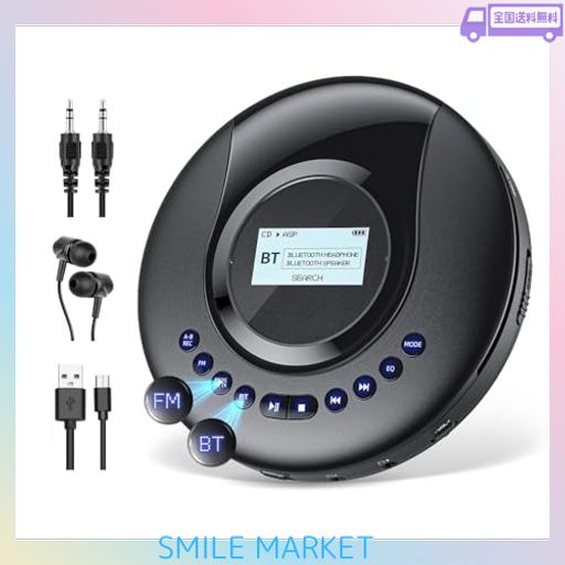ポータブルCDプレーヤーBLUETOOTH5.2対応 ARAFUNA (REC)録音機能付きFMチューナー・FMラジオ付き2000MAH電池充電式ーA-Bリピート・プログラム再生 7種類EQモード CD-R・MP3・WMA・32GB