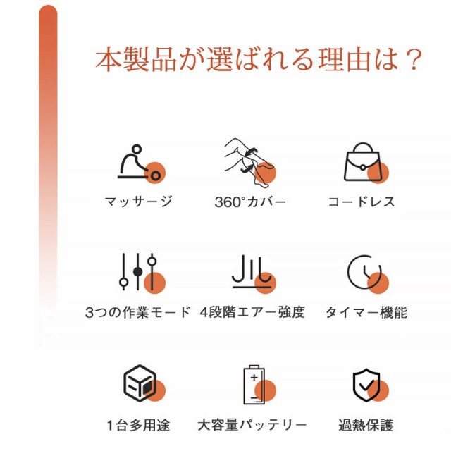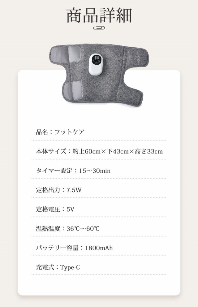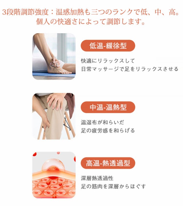 - 仕事中は一日中立っていて、ふくらはぎが痛くて、このマッサージ器を買いました。温度や強度を調節できるのは本当にいいですね。
