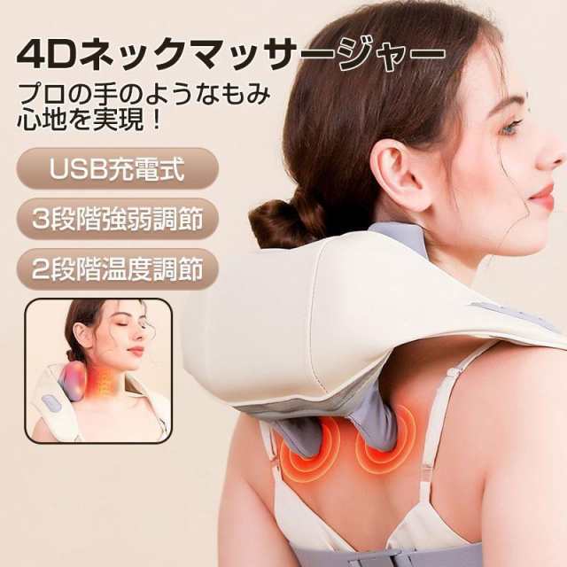 マッサージ器 4Dネックマッサージャー 肩こり 解消グッズ ネックマッサージャー 首マッサージ器 小型 多機能 コードレス 全身 温熱 強弱調節 健康