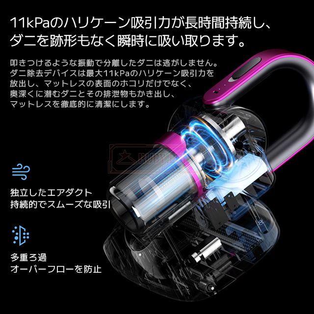 | 【ダニ除去器付き】 | ◆ダニ除去器を使うことでベッドのダニを退治し、健康的な生活をもたらします。 |