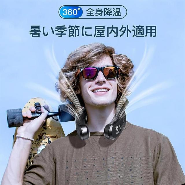 ○使用上の注意事項○※改造/本来の目的以外/強い衝撃などはお控え下さい。※仕様は入荷時期により予告なく変更する場合があります。※ディスプレイ画面等の環境上、写真と実際の商品の色とは多少違う場合がございます。※海外輸入商品により、汚れ/ダメージ等がついている場合がございます。○以上、ご同意の上ご購入ください![2025年新登場ネックファン&冷感 MAX-20℃]この冷感首掛けファンは進化の半導体技術による冷却力が大幅に向上し、従来品と比べて、冷却面積が2倍以上、首全体をしっかりとカバーし、瞬時に肌に冷たさを感じます。気温39度の猛暑でもたったの1秒でひんやり冷却し体感温度を-16℃?20℃下げることができます。首から全身にかけて強力な冷感を伝え、暑さを和らげます。快適な冷却効果をお楽しみいただけます[低騒音設計&省エネ]ネッククーラーの静音性がアップしました。高品質のファンモーターに求められるすべての条件を満たした理想的な静音モータで、騒音を大幅に低減しました。低騒音(30db以下)により図書館、スポーツ観戦、屋外作業、電車、オフィスなどの屋内、屋外で、場所を選ばずに使えます。また、従来のバッテリーに比べて高性能な素材を使用しており、このネッククーラーは低消費電力です。空気循環によって冷却効果を実現するため、エネルギーを節約し、夏のエアコンの電気代を削減できます[バッテリー残量表示&USB充電式 ]首掛け扇風機の側面にLEDスクリーンを搭載しているので、バッテリー残量や運転モードが一目瞭然です。また、風量スイッチをダブル押してバッテリー残量が分かります。[髪を巻き込まない安心設計&6000mAh大容量]羽根なし首掛けタイプで髪が引っ掛かったり、異物を挟み込む事をご心配なく。首へのフィット感、髪を巻き込まないなど何度も試作検証して使いやすさを追求しています。さらに、大容量の6000mAhバッテリーを搭載し、3時間で充電済み、満充電で最大12時間の連続稼働が可能です。そして、風量を最大にして体を涼しく保つことができ、長時間の使用でも安心して使えます[3段階風量&冷感調節]「弱」・「中」・「強」の3段階風量&半導体冷却が自由に調節でき、化粧崩れ/汗のべたつき夏場の様々ま悩みを解消! 風量操作:風量スイッチ2秒を長押し→F1→F2→F3→F1; 冷却操作:冷却スイッチ2秒を長押し→C1→C2→C3→C1。 ※ご注意:冷却プレートの放熱のため、電源を切ったあと約15秒後に冷却プレートのファンが停止します[上下送風&角度調節可能&品質保障]くびかけ扇風機の上下方向から同時に強く送風したり、720°立体的送風デザインで、広範囲に当たることで顔や首全体を一気に冷やせます。掛け部には柔軟性のあるシリコン素材を採用し、女性から男性まで、あらゆる体型の人に合わせた首周りのサイズの調整が可能です。