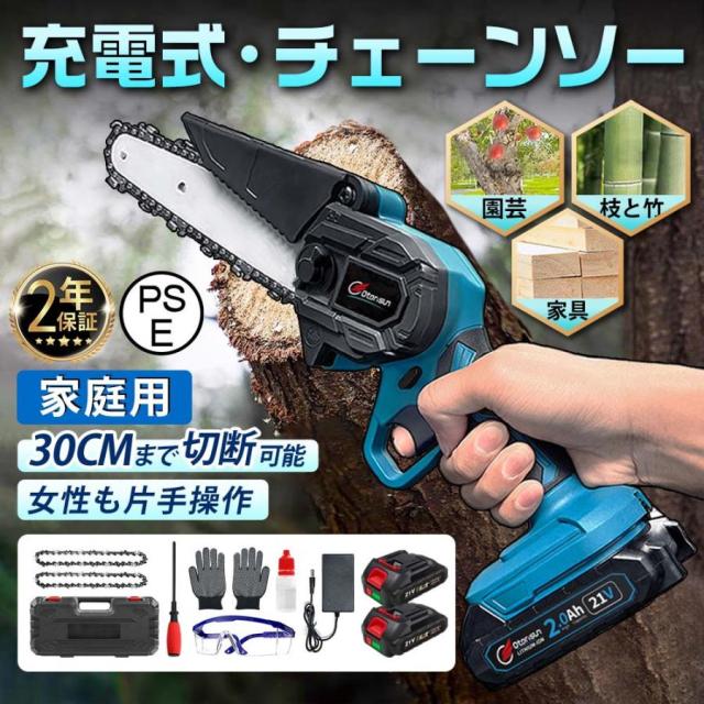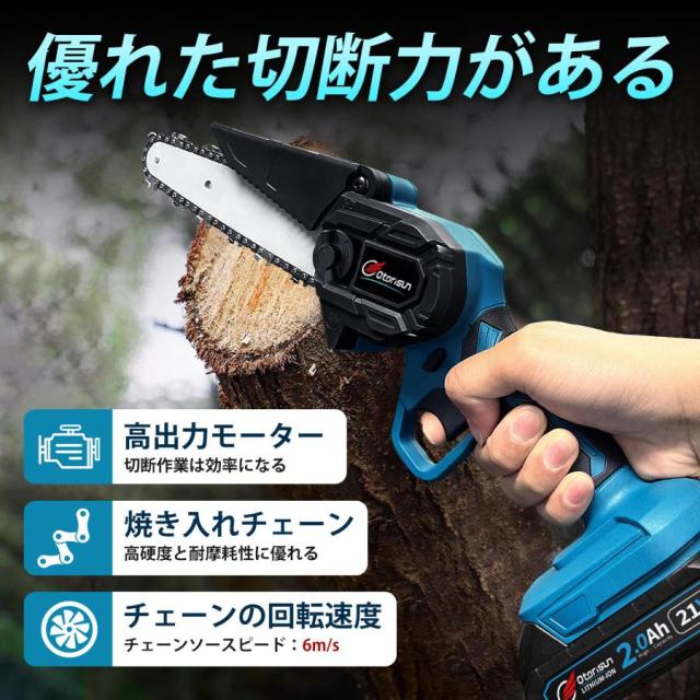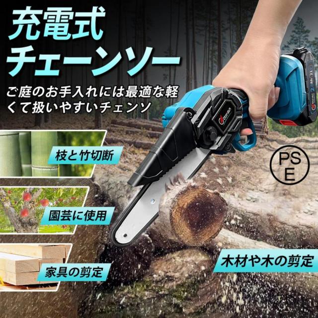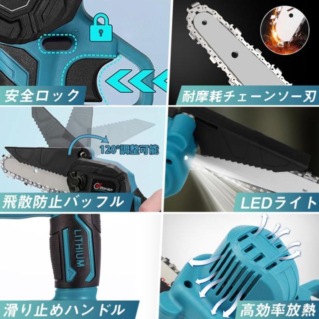 【正規品】 チェーンソー 充電式 小型 6インチ マキタ バッテリー互換 電動ノコギリ ハンディチェーンソー 安全ロック 高速切断 木工切断 家庭用 片手 軽量 女性