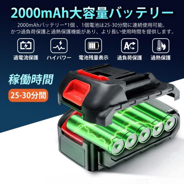 (1)1個バッテリーは約25分間に使用可能(作業状況により使用時間が異なる場合があります)
