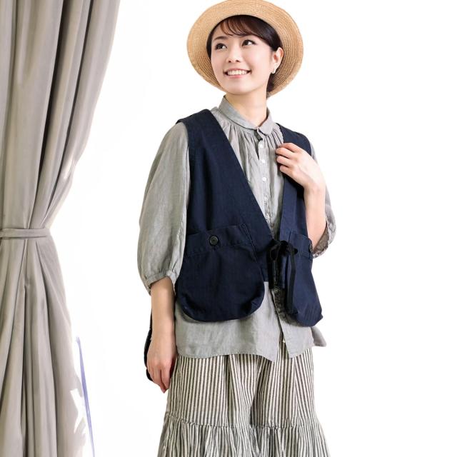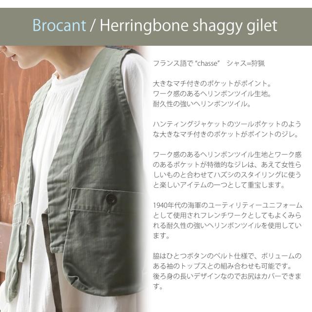 ベスト ブロカント シャスジレ ヘリンボンツイル 綿麻 Brocante DMG ( 38-278s ) ハンティングジャケット ツールポケット アウター ふんわりシルエット トップス レディース ブロカンテ ドミンゴ ディーエムジー おしゃれ アーベン 普段使い