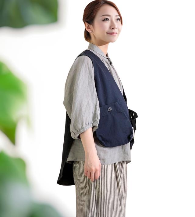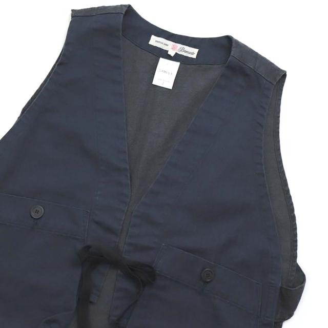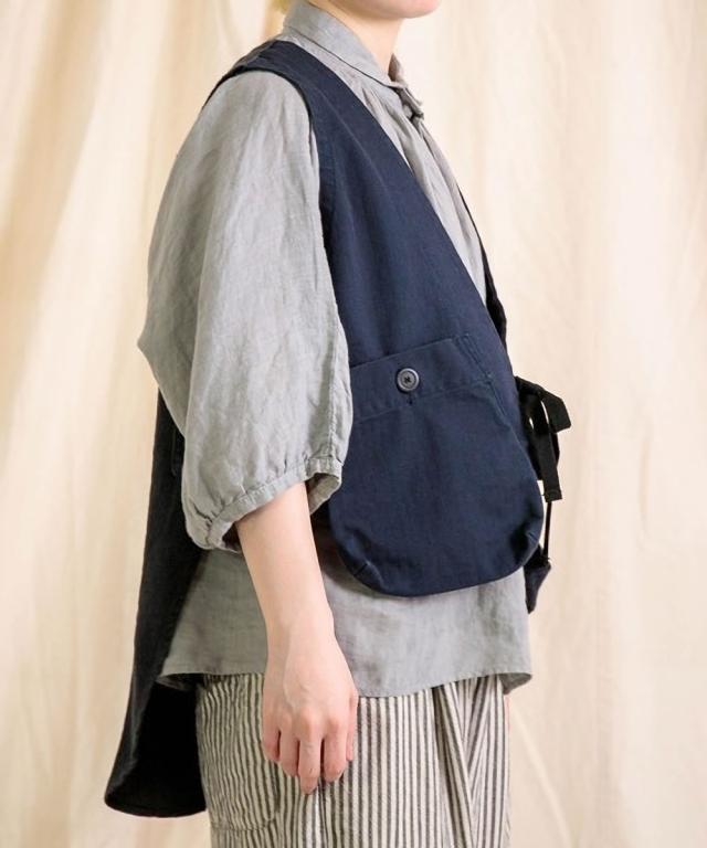ハンティングジャケットのツールポケットのような大きなマチ付きのポケットがポイントのジレ。