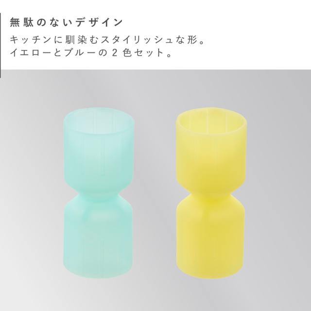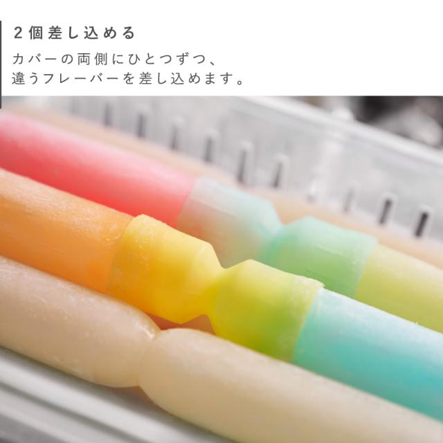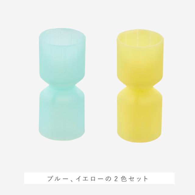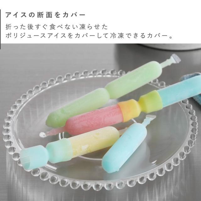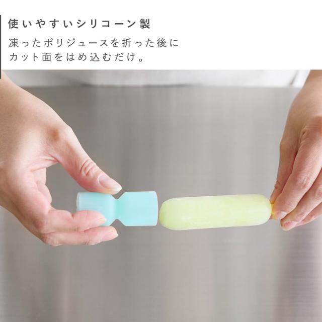 残った半分のポリジュースアイスの断面をカバーするシリコーン製のアイスカバー。余ってしまった半分のポリジュースアイスのカット面をカバーして、再び冷凍庫に戻して保存できるアイスカバー。イエローとブルー、各1個ずつ入っている2色セットです。食洗機で簡単にお手入れできます。
