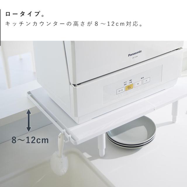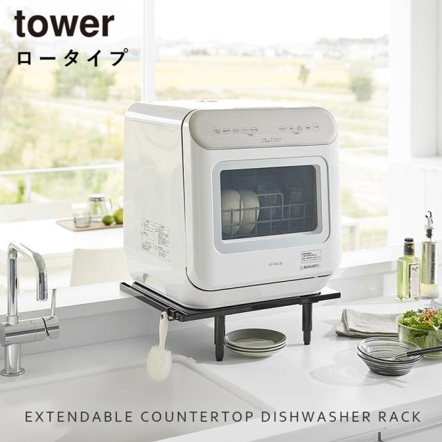 カウンターに乗せられる伸縮食洗機ラック タワー ロータイプ 山崎実業 tower 食洗機 ラック 伸縮 棚 高さ調節 おしゃれ モノトーン ホワイト ブラック 5303 5304 メーカー直送