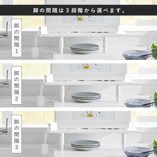 天板の幅が伸縮できるので 様々なサイズの食洗機に対応。