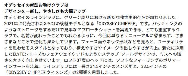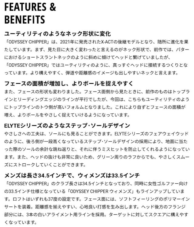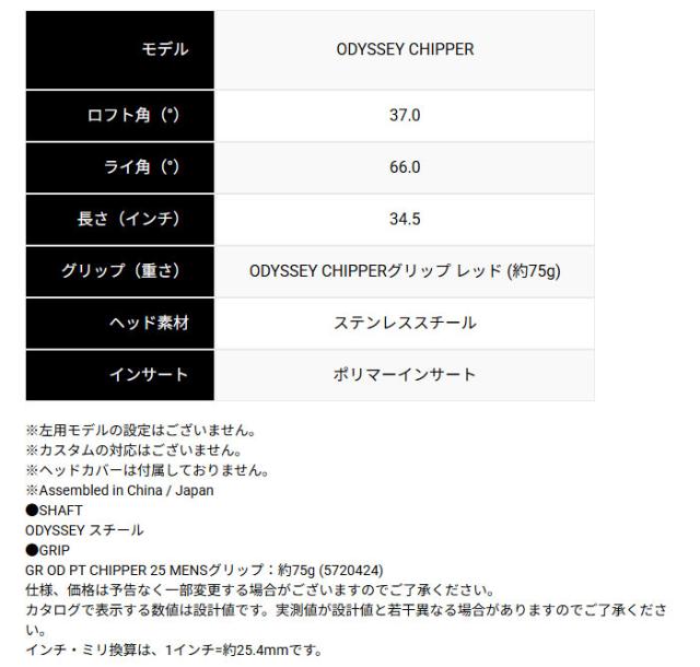 オデッセイ ODYSSEY CHIPPER パター ODYSSEY オリジナル スチール シャフト 2025年モデル