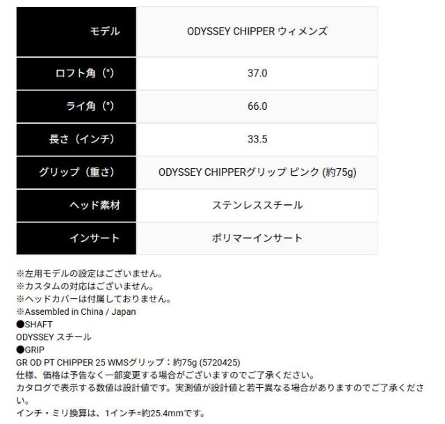 【レディース】オデッセイ ODYSSEY CHIPPER パター ODYSSEY オリジナル スチール シャフト 2025年モデル