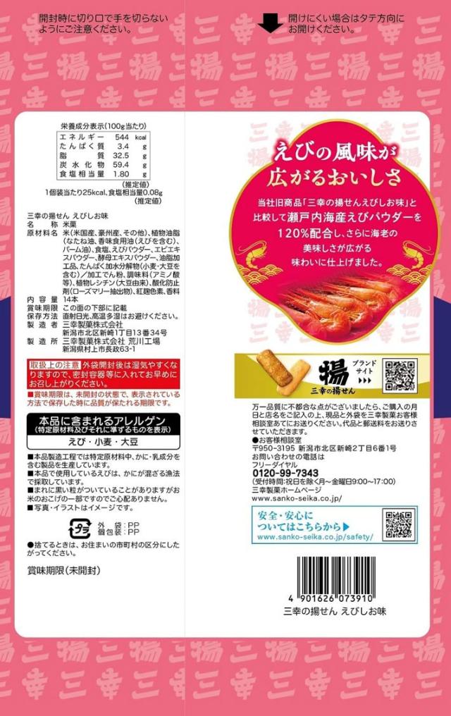 三幸製菓 三幸の揚せん えびしお味(14本) 12袋入り 1ケース (北海道は別途700円かかります。沖縄配送不可)