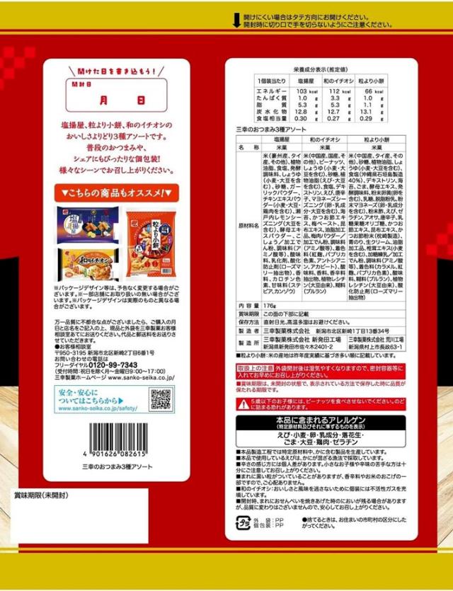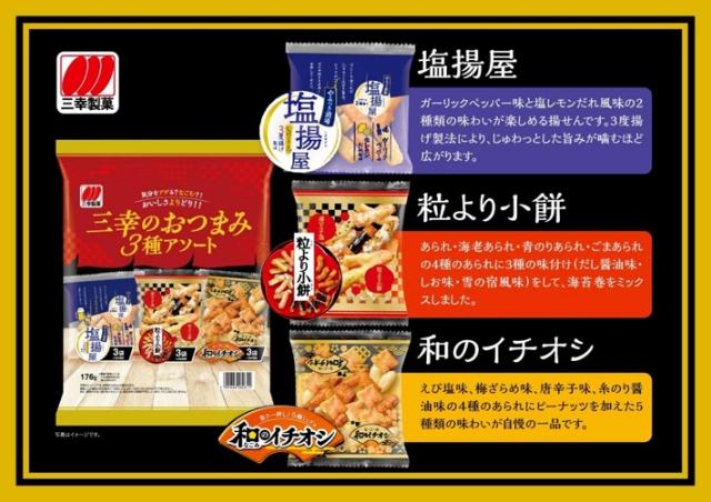三幸製菓 三幸のおつまみ3種アソート(176g) ケース12袋入り(2ケース合計24袋) (北海道は別途700円かかります。沖縄配送不可)