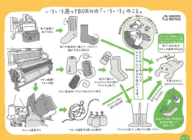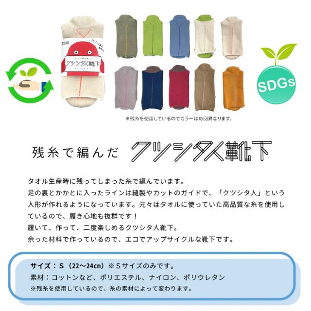 クツシタ人靴下は、今治タオル工場でタオルを作る時の残糸で出来上がりました。私たちはSDGsを応援いたします!