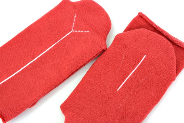 足の裏とかかとに入ったラインは縫製やカットのガイドで、「クツシタ人」という人形が作れるようになっています。
