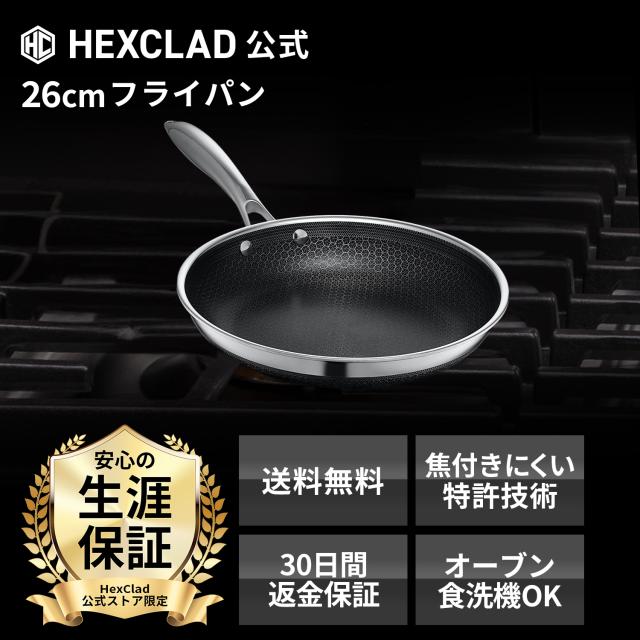 HexClad 公式 ハイブリッド フライパン 26cm ノンスティック 焦げ付き防止加工 IH対応 焦げ付かない ガス火対応 ヘックスクラッド【公式限定 生涯保証付】【ミシュラン三つ星シェフが推薦】※こちらは『蓋なし』の商品です