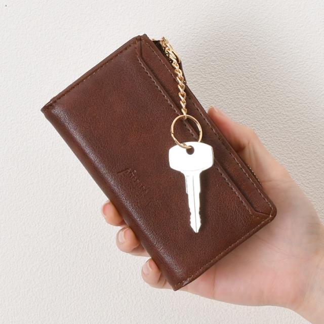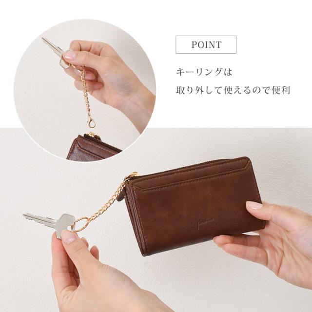 カードや鍵も収納できるキーリング付きで、小銭と一緒にひとつにまとめて持てる◎