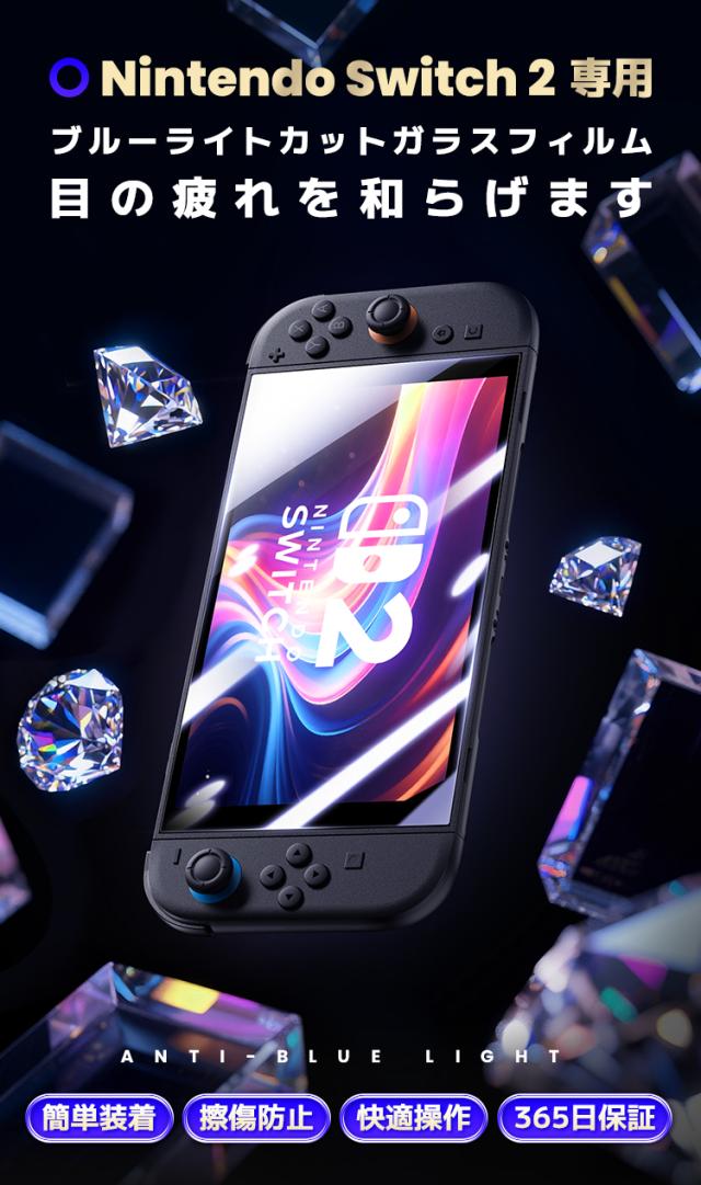 【Nintendo Switch2専用・2025年新型対応】 Nintendo Switch2 ガラスフィルム ブルーライトカット 保護フィルム 任天堂 スイッチ2 フィルム 強化ガラス 液晶フィルム Switch2 スイッチ2 簡単貼り 画面保護 強化ガラスフィルム 10H 貼るピタ マジック 貼り方