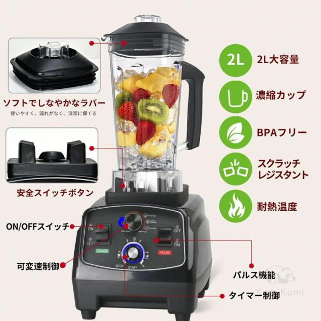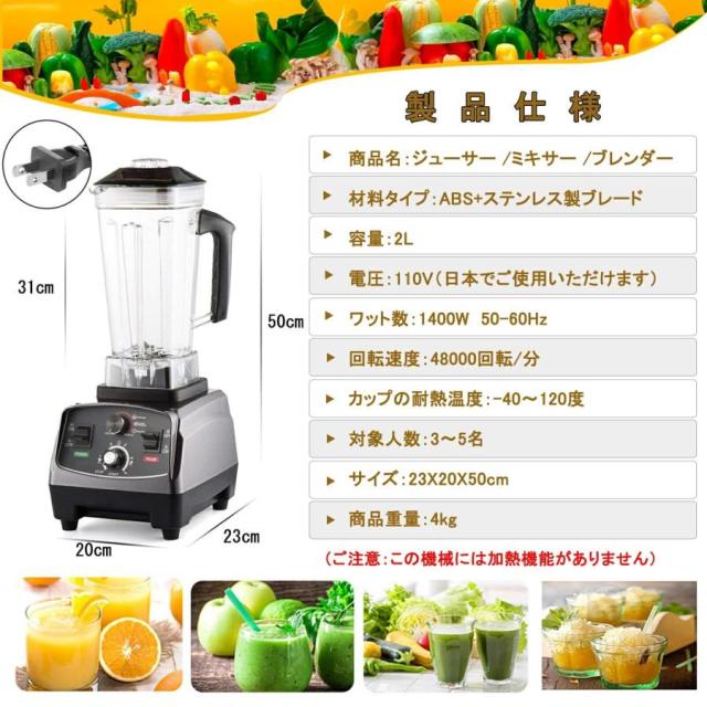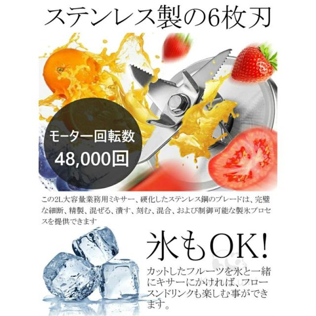 ミキサー 大容量 2L 氷も砕ける 業務用 高効率 48000RPM高速回転 洗い やすい ブレンダー 1400Wタイマー機能付き 多機能ジューサー 家庭用 氷削機 過熱保護