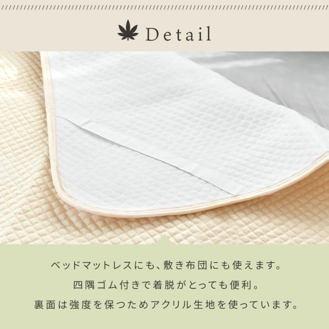 | ・麻と暮らす夏 麻は古くから愛される天然繊維のひとつです。特に夏のベタつきが気になる日本では、そのシャリっとした涼やか感触で寝具にぴったりの繊維です。 ・ぽこぽこが秘訣ポコポコとした凹凸が生む隙間に風が通り抜け、さらりと心地よい肌ざわり。触れた瞬間ひんやりとして、爽やかな寝心地が続きます。 ・洗濯機で丸洗いOKお洗濯に強く、毎日気持ちよく使えるのもうれしいポイントです。 ベッドマットレスにも、敷き布団にも使えます。 | |