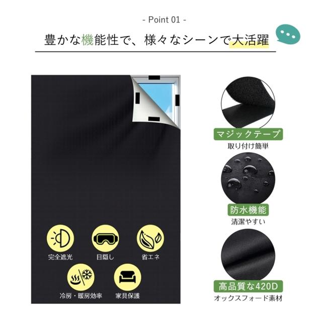 【1.45m×2m】窓遮光シート 朝早く目覚める対策 マジックテープ 窓 ガラス 布 100%完全遮光 遮熱 紫外線カット 防水 窓ガラス目隠しシート 目隠し UVカット 完全遮光シート