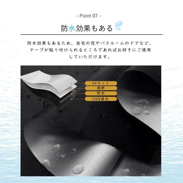 | 【様々なシーンで大活躍】 | 防水効果もあるため、自宅の窓やバスルームのドアなど、テープが貼り付けられるところであればお好きにご使用していただけます。フリーカット可能だから、どんなサイズにも合わせやすいです。 |