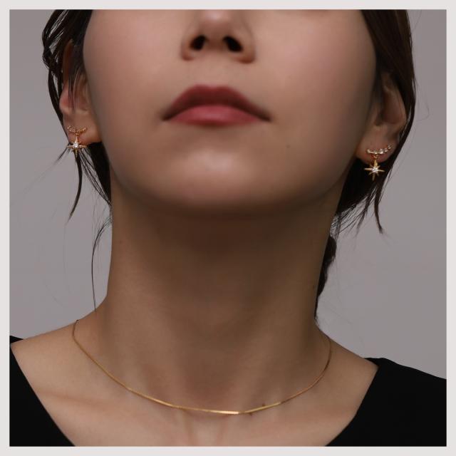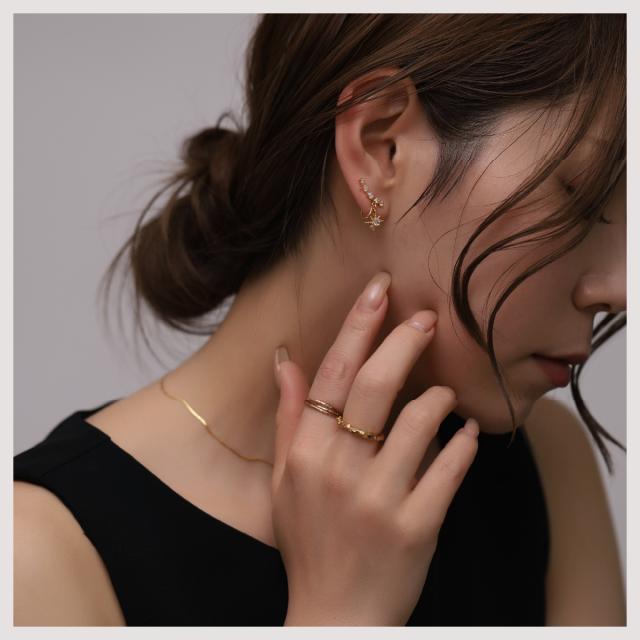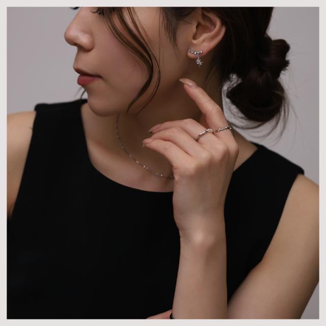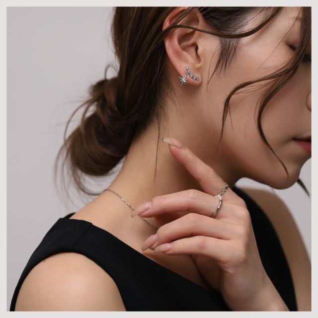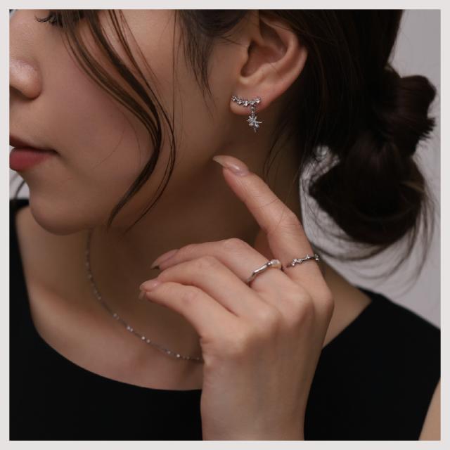 - デザインに惹かれて購入です。 ゴールドとすごく迷いましたがオールゴールドではない感じだったのでシルバーを選びました。 痛くないし、かわいいし、クーポン利用でお手頃になり満足です。