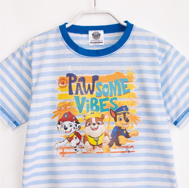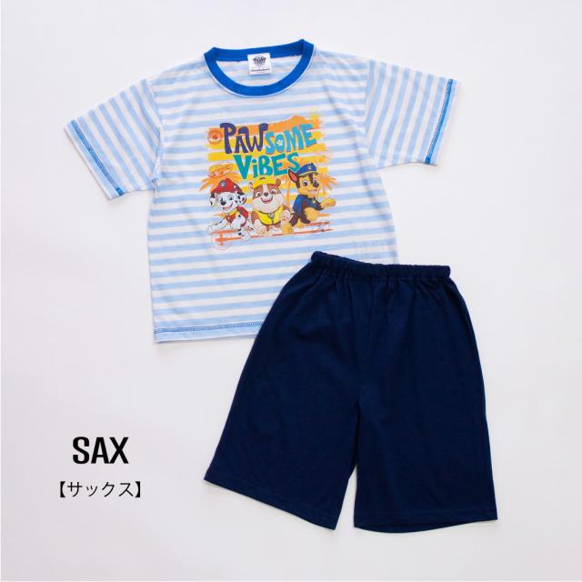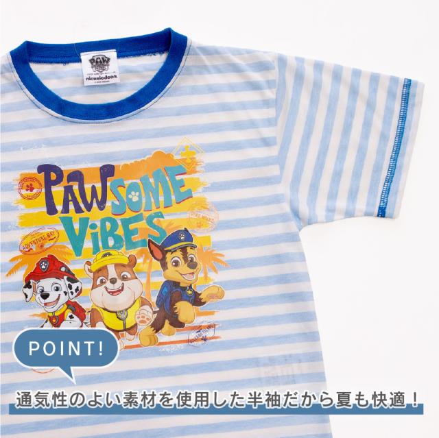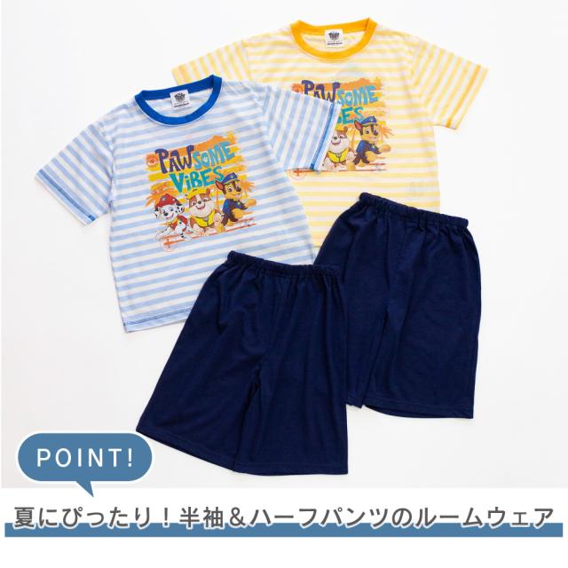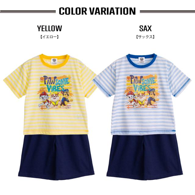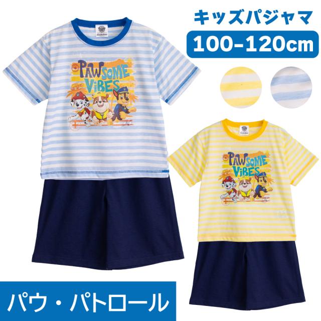 パウパトロール パジャマ 男の子 半袖 春 夏 天竺 Tシャツ素材 イエロー サックス 100 110 120 子供 ボーイズ パウパトロール チェイス マーシャル スカイ ラブル
