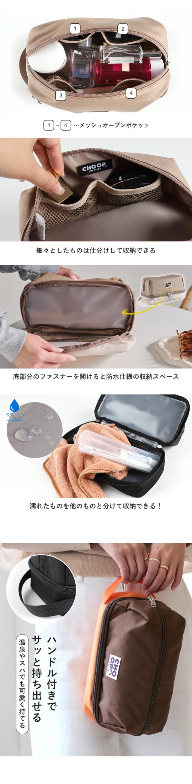 CHOOP シュープ トラベルポーチ 大容量 コスメポーチ 化粧ポーチ パッキング 便利グッズ 吊り下げ 持ち手 ハンドル 自立 ポーチ スキンケア 防水ポケット メッシュポケット 海外旅行 国内旅行 かわいい おしゃれ 機能的 スタイルオンバック【ct-69806】