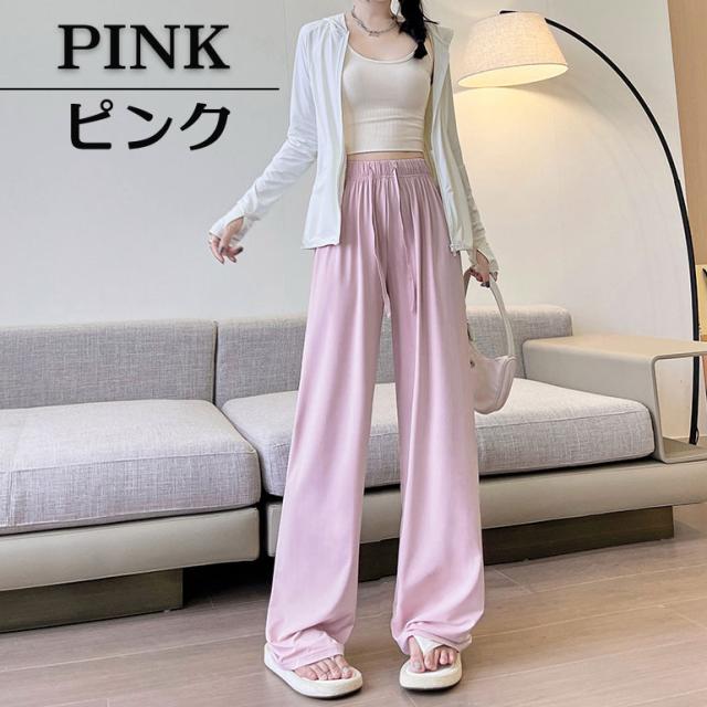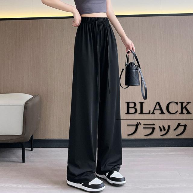 ワイドパンツ ドレープ ひんやり UVカット 大きいサイズ レディース 接触冷感 薄手 夏 ロング さらさら 涼しい ワイド ボトムス ズボン 長ズボン リラックス ウエストゴム 楽ちん 美脚 イージーパンツ