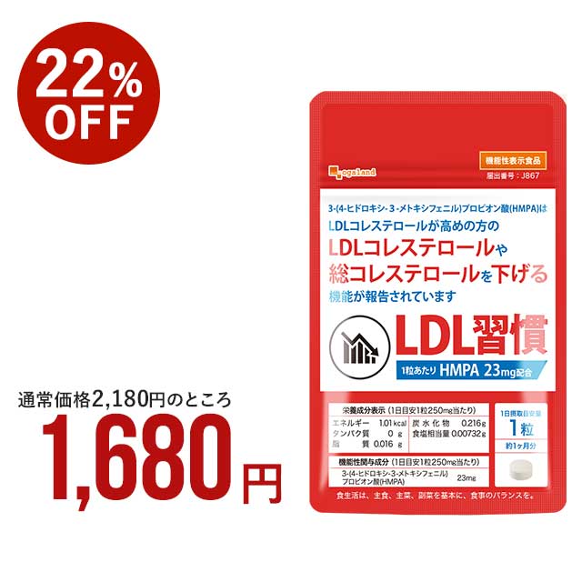 【セール!!】【機能性表示食品】LDL習慣(約1ヶ月分)コレステロール 下げる サプリ LDL 機能性表示食品 サプリメント 送料無料 悪玉コレステロール サプリ コアポリフェノール オーガランド HMPA 健康 米ぬか 脂質 ポリフェノール プロピオン酸 _JH _1K 11099