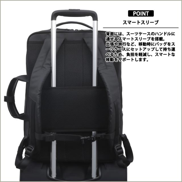 ショルダーストラップを背面スリーブに収納すれば、ブリーフケーススタイルにチェンジ可能。シーンに合わせて自在に使い分けできます。