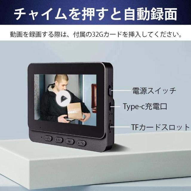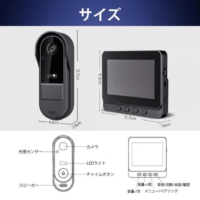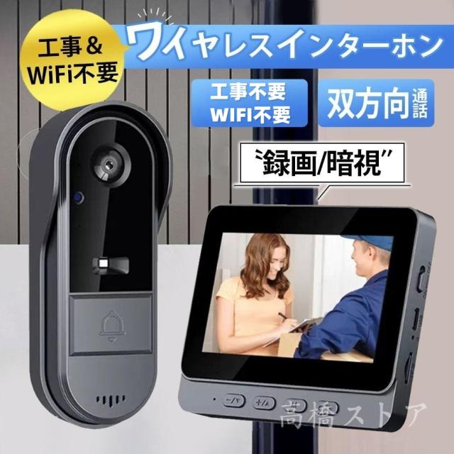 インターホン テレビドアホン カメラ付き 録画機能 工事不要 WIFI不要 ワイヤレス チャイム モニター付き テレビドアホン 双方向通話 録画 暗視ドアホン 防水 USB充電 玄関 防犯 介護 インターホン ドアホン W5