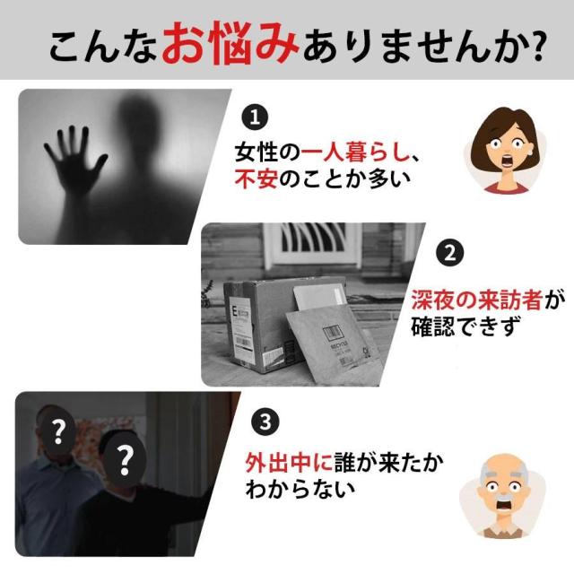 撮影範囲が広く、来訪者はもちろん、複数人の来客でも周囲の状況もしっかりと視認できます。