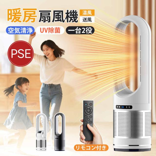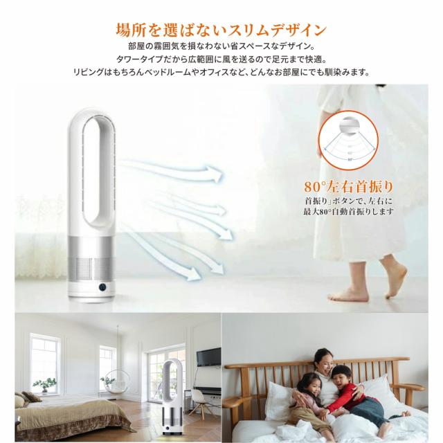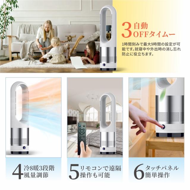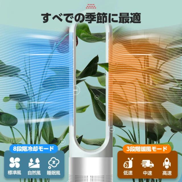 セラミックヒーター 扇風機 冷暖兼用 1台2役 自動首振り 冷暖タイプ 羽根なし扇風機 DCモーター 8段階風量調節 リモコン付き サーキュレーター 羽根なし扇風機 おしゃれ 換気 熱中症対策 静音 省エネ 節電