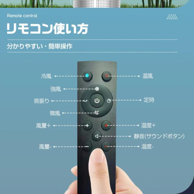 マイナスイオン、静音、空気浄化機能があり、風が飛ばす距離は約6メートルであり、遠隔操作も可能です