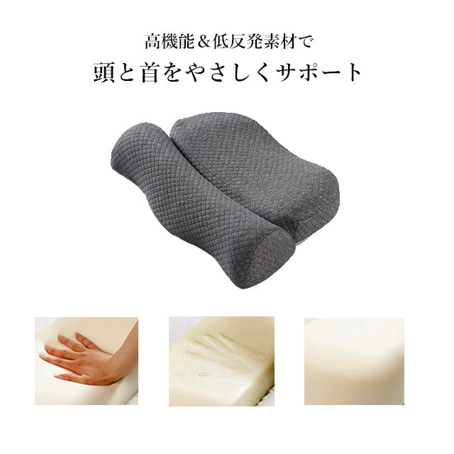 両サイドが盛り上がり、中央にへこみを持った立体的な曲線形状が、仰向き時の首の位置、また横向き時の肩の高さに着目して体にフィットするように製造。首の曲線にぴったりと沿うのでフィット感抜群。