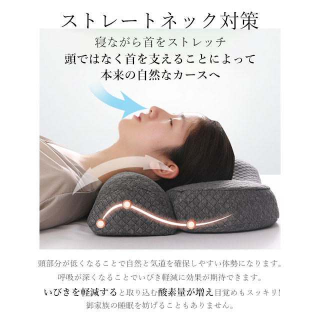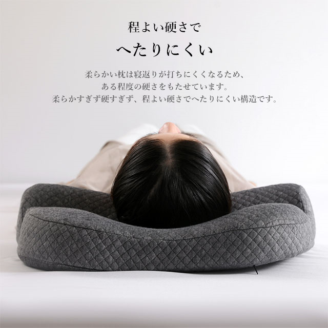 首が痛くならない、を目指して、その心地よいフィット感でゆったりと快適に眠りをサポートします。
