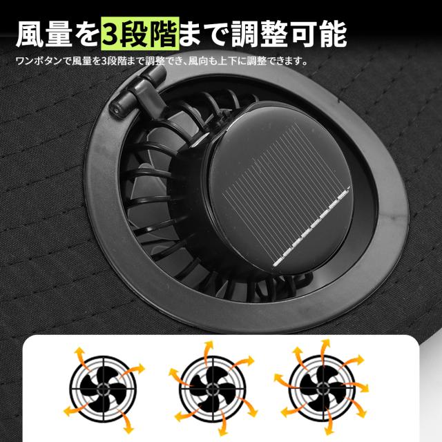 顔を冷やすため、両側のつばの部分にファンが二つあり、暑い夏でも日差しを遮りながら顔や首まで涼しい風を送り、汗をかいても屋外で少しでも快適! ワンボタンで風量を3段階まで調整できます。