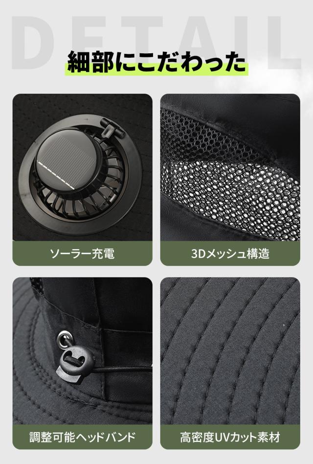 商品特徴 【扇風機付きキャップ・3段階調整可】